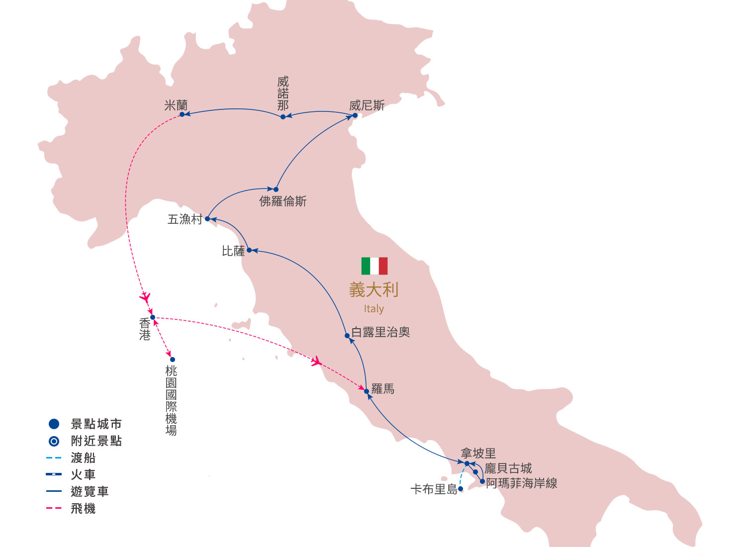 2026/05/13(三) | 桃園國際機場出發 《寵愛 義大利12日 雙島奇緣》天空之城│五漁村│藍洞│圓形劇場│米其林饗宴│烏菲茲美術館│梵蒂岡博物館機位 26 候補0 已售24 可售1前10名早鳥優惠3000元 |