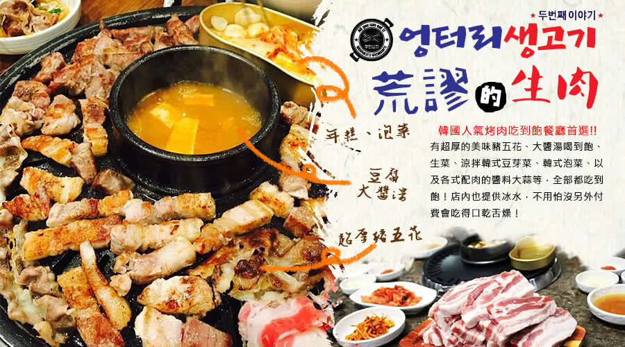 晚餐:★超人氣烤肉★【荒謬的生肉】厚烤豬五花肉食放題(餐標16900韓元)