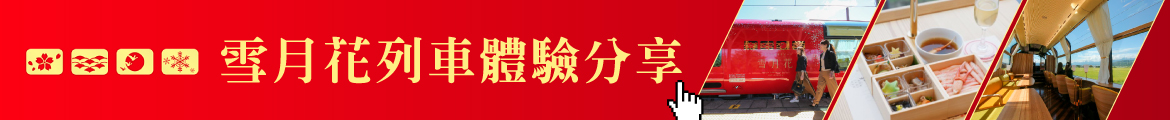 【雪月花列車】行駛於上越妙高與系魚川之間,號稱以日本最大展望與高級料理,讓旅客有豪華的渡假感受。此列車從牆壁到地板、再到桌椅設計,無一不是新潟當地素材,大紅色的車廂和流線型的曲線設計也是來自新潟縣的縣鳥朱鷺,全車僅兩節車廂,充滿藝術與質感的設計,空間感與光感交錯,身置舒適的氛圍;務必前往第1節車廂頭的車掌展望室好好欣賞巨大玻璃景觀窗帶來的震撼與感動。沿途可欣賞到越後富士的妙高群山、日本海絕景與鄉村田園風光等日本在地景色,通通都能一覽無遺,徹底感受越後地區特有的豐富自然文化魅力,也能體驗到觀光列車別具特色的魅力!特別安排享用由一流廚師監督與使用當地季節新鮮食材烹調,做出特製的美味料理與甜點,來場味覺與視覺的饗宴。