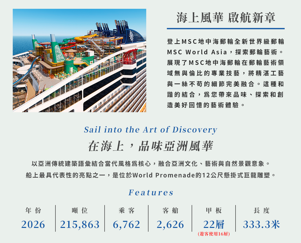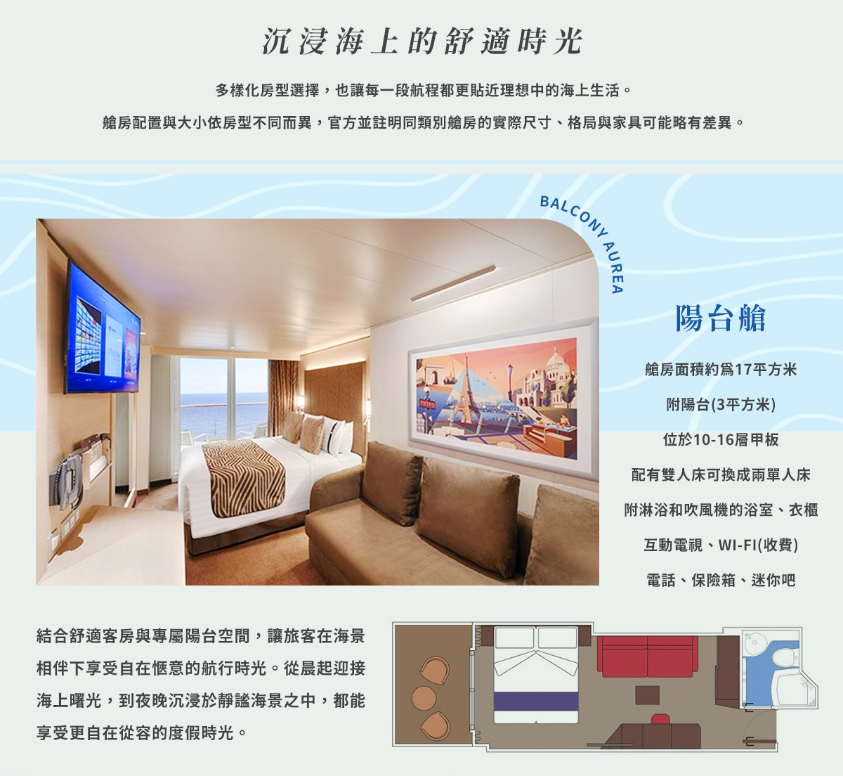 住宿:MSC 亞細亞 World Aisa 兩人一室『面海陽台艙』
